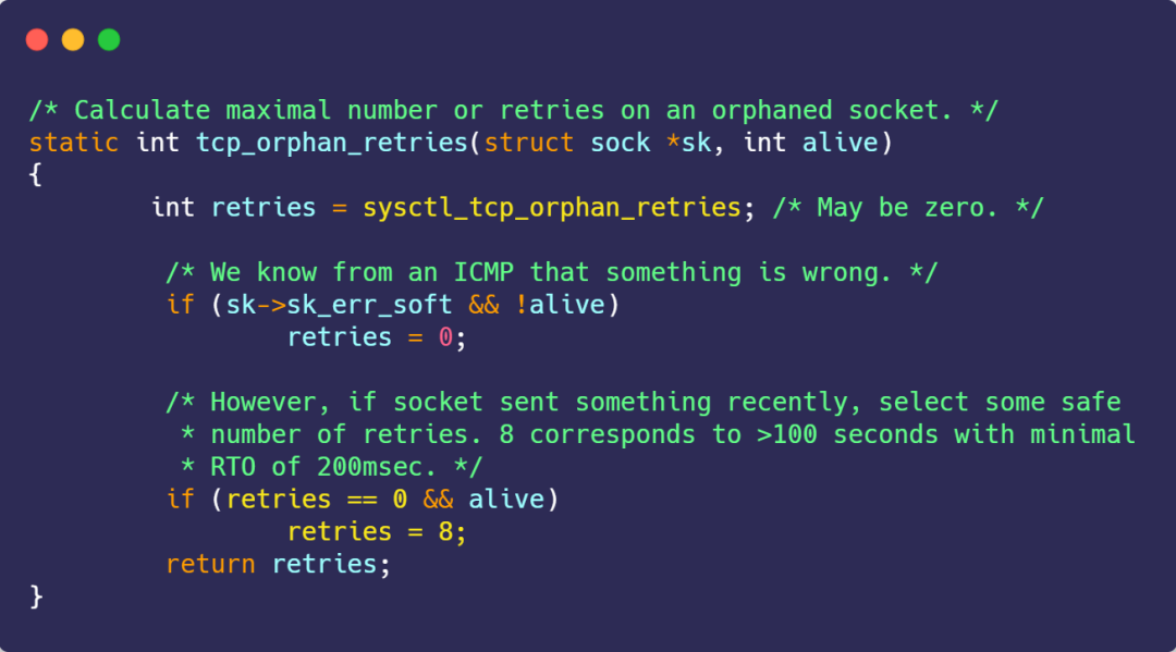 当被动方发送 FIN 报文后,连接就进入 LAST_ACK 状态,在未等到 ACK 时,会在 tcp_orphan_retries