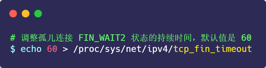 秒内没有收到对方的 FIN 报文,连接就直接关闭。同时,为了应对孤儿连接占用太多的资源,tcp_max_orphans