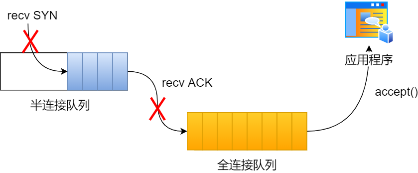 服务器收到 ACK 后连接建立成功,此时,内核会把连接从半连接队列移除,然后创建新的完全的连接,并将其添加到 accept 队列,等待进程调用 accept 函数时把连接取出来。