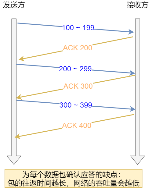 所以,这样的传输方式有一个缺点:数据包的往返时间越长,通信的效率就越低。