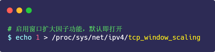 Linux 中打开这一功能,需要把 tcp_window_scaling 配置设为 1(默认打开):