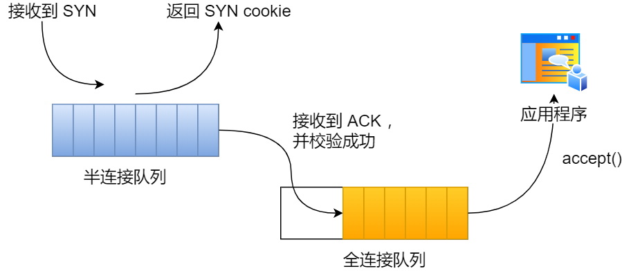并不是这样,开启 syncookies 功能就可以在不使用 SYN 半连接队列的情况下成功建立连接。